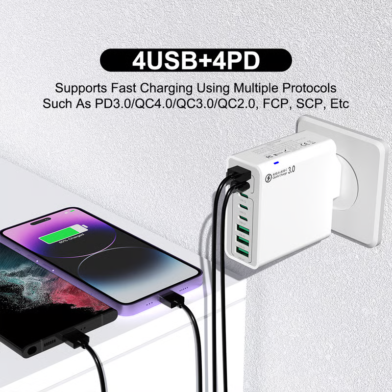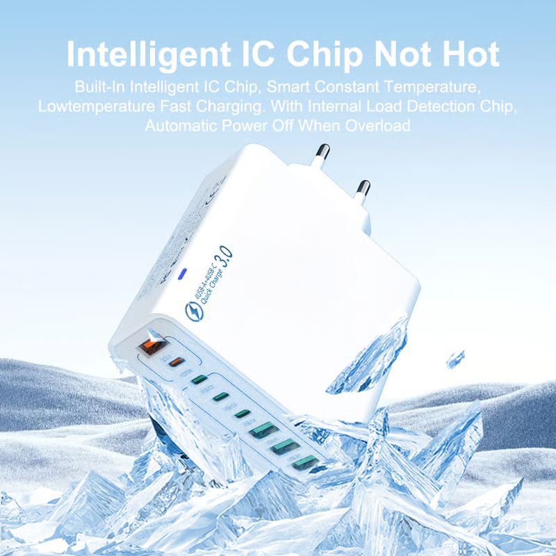 8-poorts USB-oplader, 150W Snellader voor Mobiele Telefoons – Hoge Snelheid Wandadapter voor Alle Telefoons