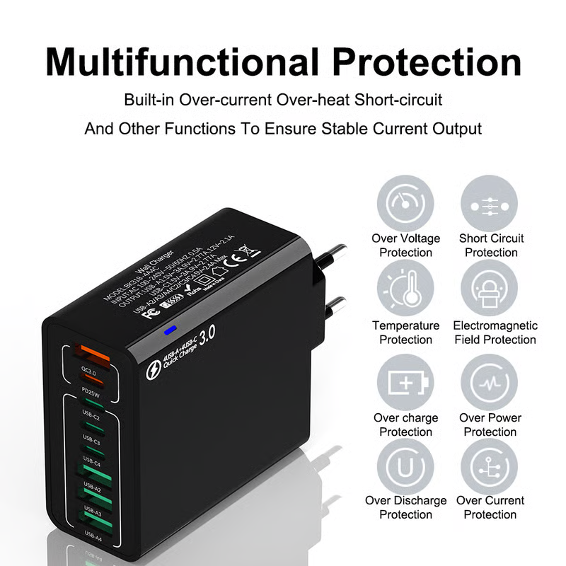 Voorzien van meerdere beveiligingen, zoals tegen overstroom, overladen, oververhitting, overspanning, kortsluiting en brandpreventie – voor extra veilig gebruik.