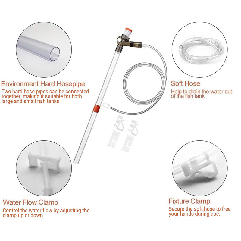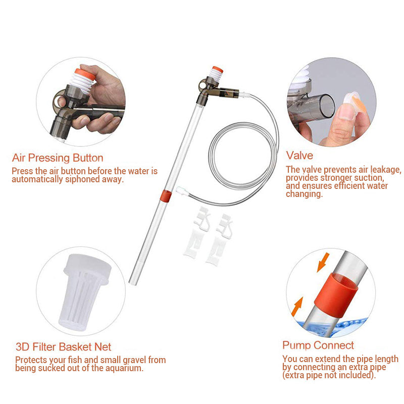 IDEAAL VOOR DE VERZORGING VAN UW HUISAQUARIUM ā Deze reinigingsset is ontworpen voor kleine tot middelgrote aquaria en helpt rommel tijdens het verversen van water te verminderen en zorgt voor een gezondere, vuilvrije wateromgeving.