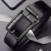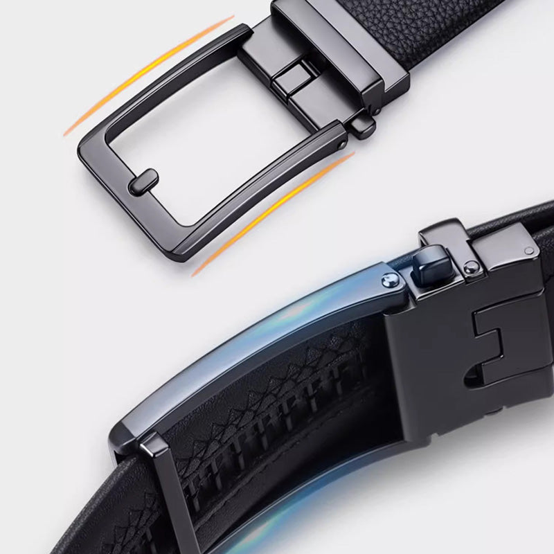 Automatische gesp: De riem is uitgerust met een innovatief schuifgespmechanisme. Schuif de riem in de gesp om hem vast te maken en hij vergrendelt automatisch. Om de riem los te maken, til je de gesp op en trek je eraan - zo makkelijk is het. Zeg vaarwel tegen traditionele gaten en geniet van moeiteloos verstellen.