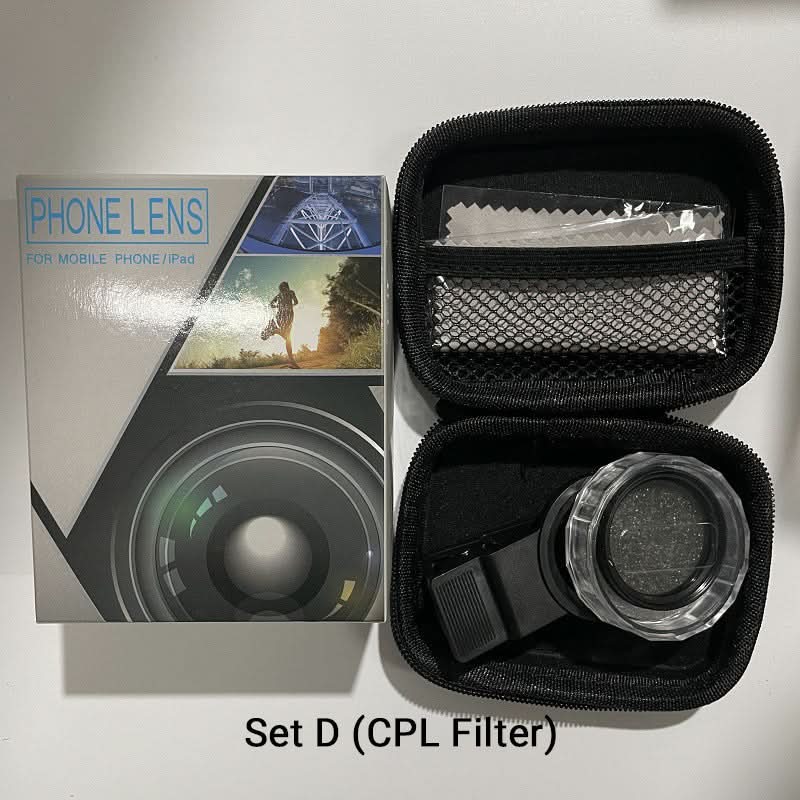 Set D bestaat uit: CPL filter + full pass clip + heuptas + reinigingsdoek