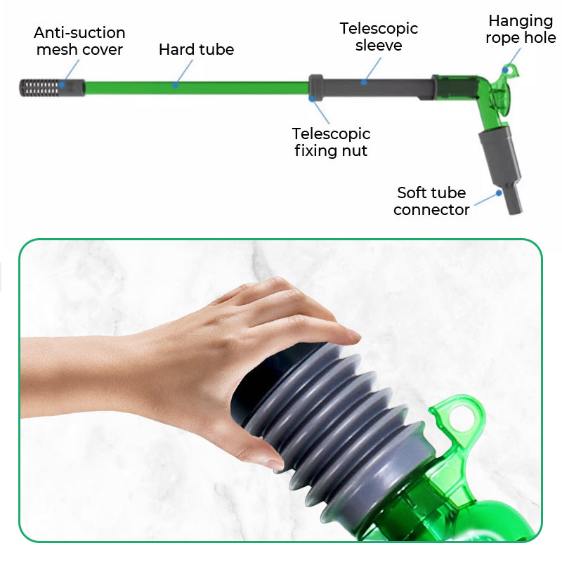 INTRUKBAAR ONTWERP VOOR GEMAKKELIJKE OPSLAG – Het uitschuifbare en intrekbare slangontwerp maakt zowel het gebruik als de opslag eenvoudig, zodat u de lengte kunt aanpassen aan de grootte van uw tank en de slang netjes kunt opbergen wanneer u hem niet gebruikt.