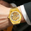 ELEGANT SKELETONTWERP: De geskeletonneerde wijzerplaat toont ingewikkelde interne mechanismen en laat je getuige zijn van de schoonheid van mechanische bewegingen, waarbij functionaliteit perfect wordt gecombineerd met esthetische aantrekkingskracht.