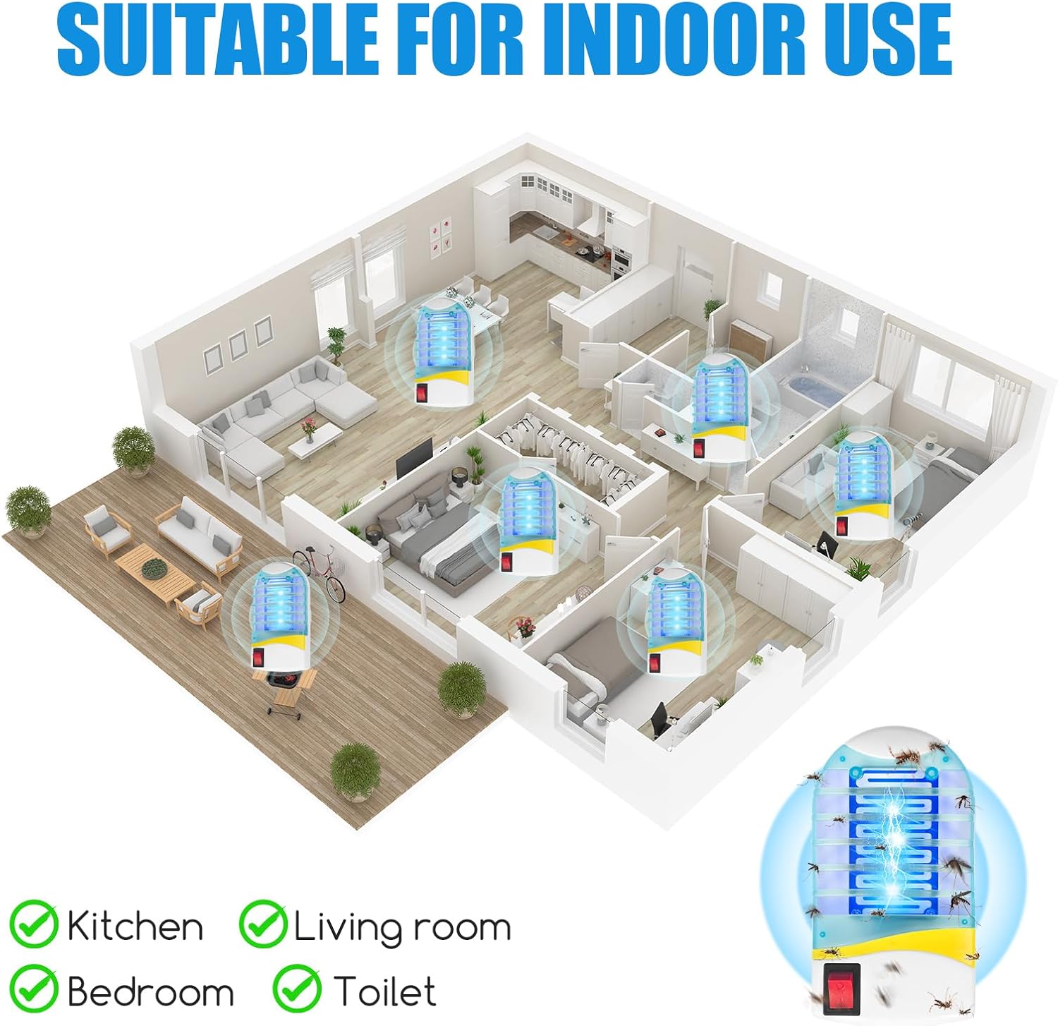 Gebruikt blauw UV-licht om vliegend ongedierte snel en effectief te lokken, zonder je slaap of werk te verstoren.