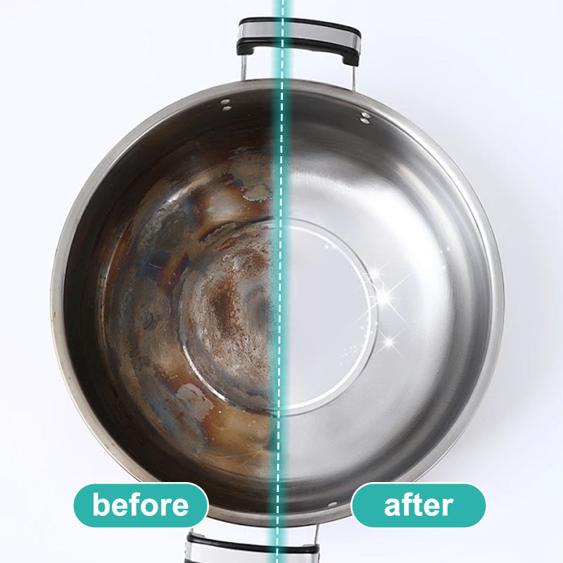 KRACHTIGE VLEKVERWIJDERAAR - Deze pannenbodemreiniger is ontworpen om zelfs de hardnekkigste vlekken en aangebrande resten aan te pakken. Het verwijdert effectief hardnekkige vlekken en herstelt de oorspronkelijke glans van je pannen en ander kookgerei.