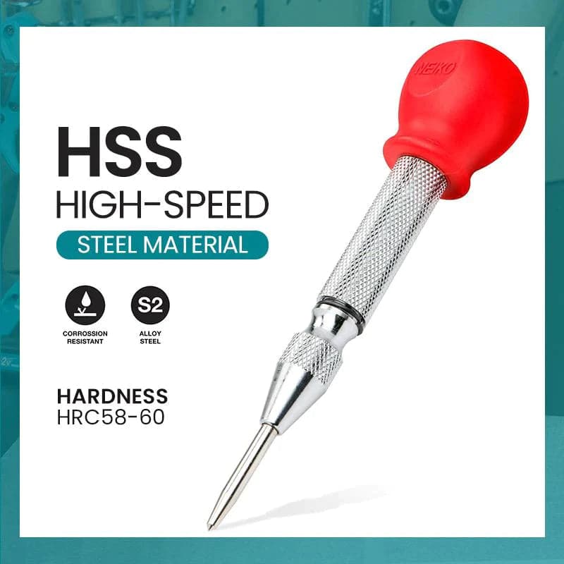 Herhaalbare impact :de 5-inch automatische veerbelaste centerponch kan gaten boren om het startpunt te markeren, en de verstelbare rode slagplug is gemaakt van ABS-kunststof, zodat de slagkracht kan worden verhoogd of verlaagd.