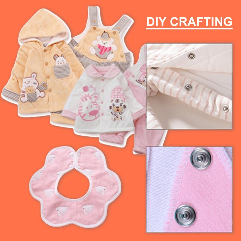 Deze drukknoopgereedschapsset is voldoende om te voldoen aan je verschillende doe-het-zelf- of dunne kledingmaakbehoeften. Het kan worden toegepast op baby slabbetjes kruipkleding hoedjes shirts baby jumpsuits speeksel handdoeken barbie / poppen kleding huisdier kleding of andere plaatsen waar je het nodig hebt.