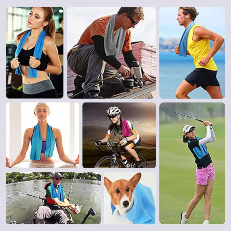 MULTIFUNCTIONELE SPORTSHANDDOEK - Geweldig voor sportliefhebbers bij golf, zwemmen, voetbal, workouts, sportschool en fitness, maar ook voor behandeling van koorts of hoofdpijn, voorkomen van hitteslag, zonnebrand en absorptie terwijl het koelt. Blijf koel tijdens hete zomerdagen, workouts, buitenavonturen of migraines. Als je veel zweet, spoel dan af en toe met "zoutwater", omdat zout de verdamping/koelingssnelheid vermindert.