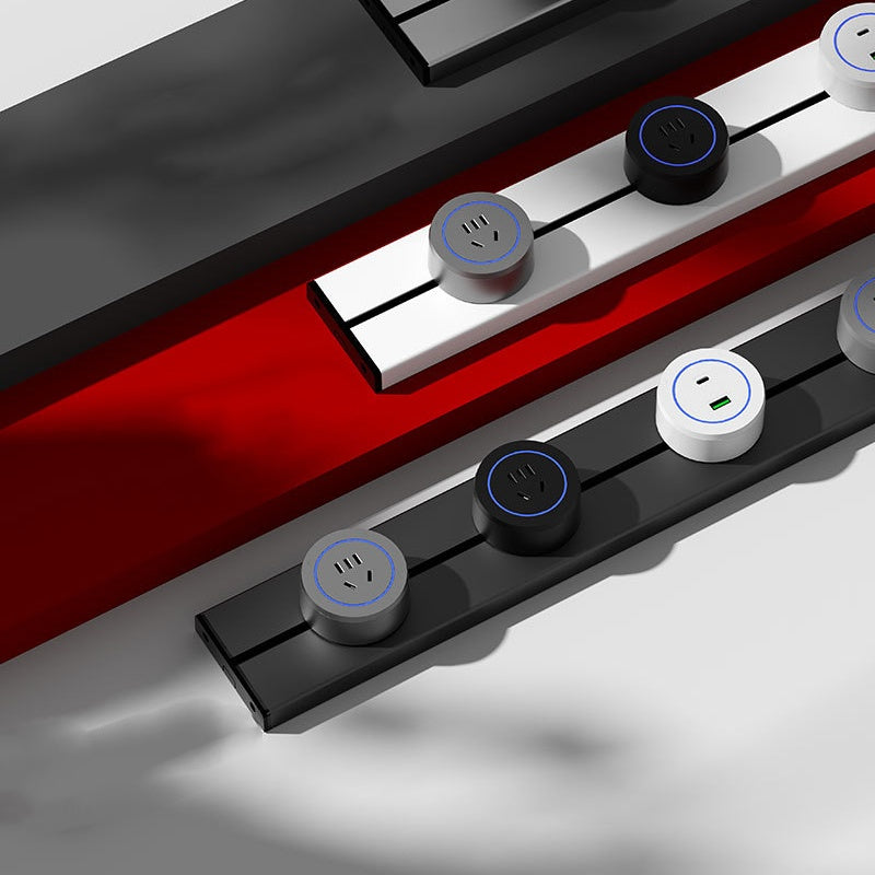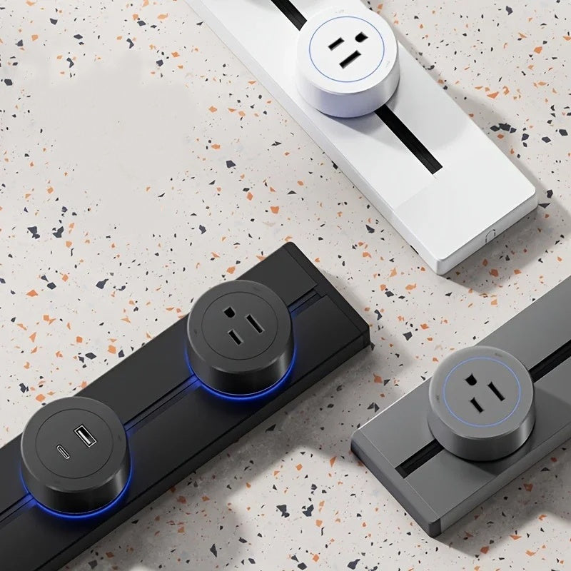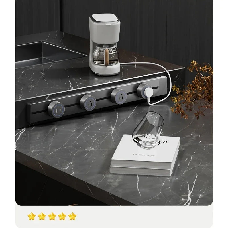 INNOVATIEF ONTWERP VOOR WANDMONTAGE - Met een gestroomlijnd railsysteem aan de muur dat stopcontacten weghoudt van het aanrecht, is het ideaal om keukens, kantoren of werkruimtes netjes en opgeruimd te houden.