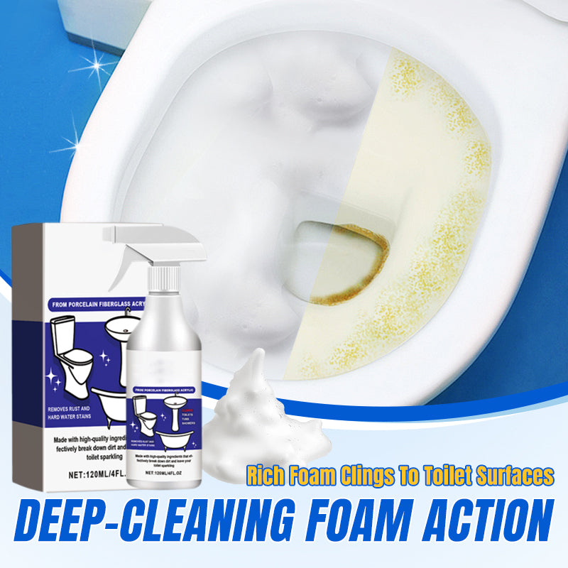 DIEPREINIGENDE SCHUIMWERKING – Rijk schuim hecht zich aan toiletoppervlakken, breekt hardnekkige vlekken zoals roest en kalkaanslag af en neutraliseert geurtjes voor een frissere badkamerervaring.