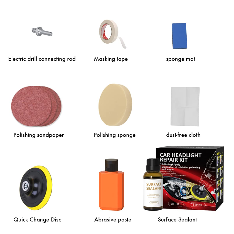 Verpakking bevat: 1 × Universele Koplamprestauratiekit voor Auto's / 1 × Universele Koplamprestauratiekit voor Auto's + Reinigingsgereedschap