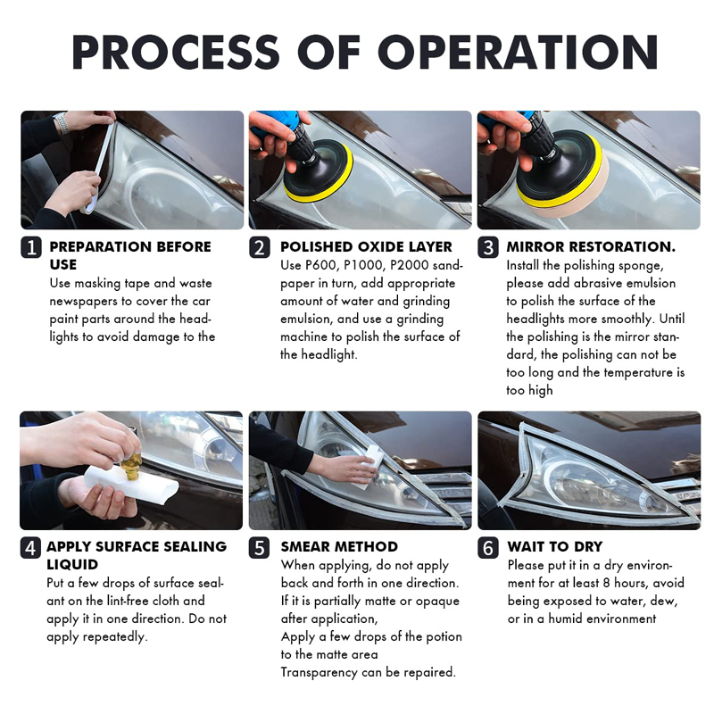 DUURZAME BESCHERMING: Bevat een keramische coatingformule met hoge transparantie en sterke hechting. Voorkomt toekomstige vergeling, oxidatie en krassen, zodat je koplampen langer helder blijven en hun levensduur wordt verlengd.