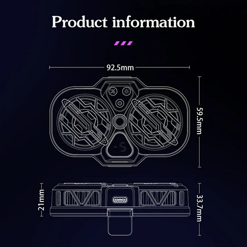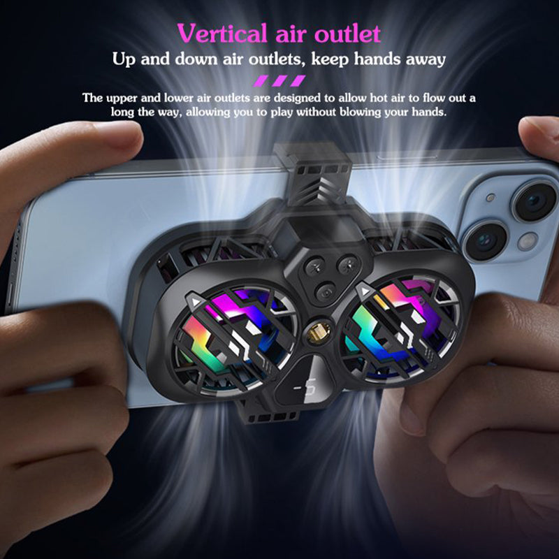 HANDVRIJE VERTICALE LUCHTSTROOM: De radiator heeft een verticaal luchtstroomontwerp dat je telefoon koelt zonder lucht direct op je handen te blazen, zodat je een ononderbroken en comfortabele game- of streamingervaring hebt.