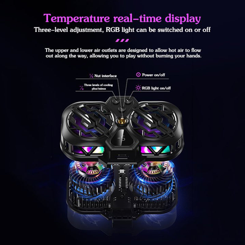 TEMPERATUURWEERGAVE & RGB-LICHTEN: Voorzien van een real-time temperatuurweergave zodat je de koelstatus van je telefoon kunt controleren. Pas de esthetiek aan met schakelbare RGB-lampjes om stijl toe te voegen terwijl je telefoon koel blijft.