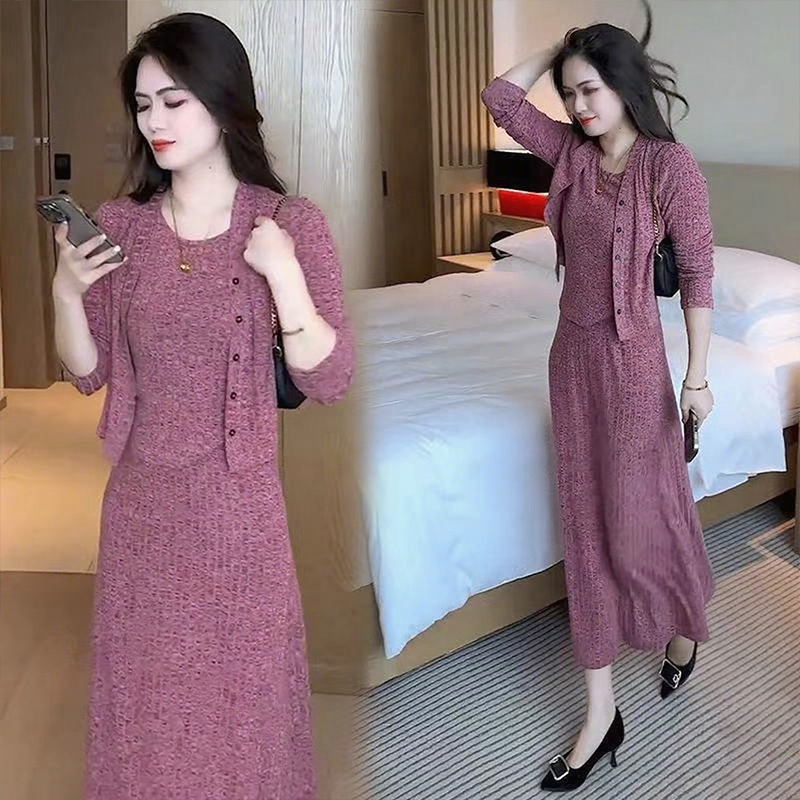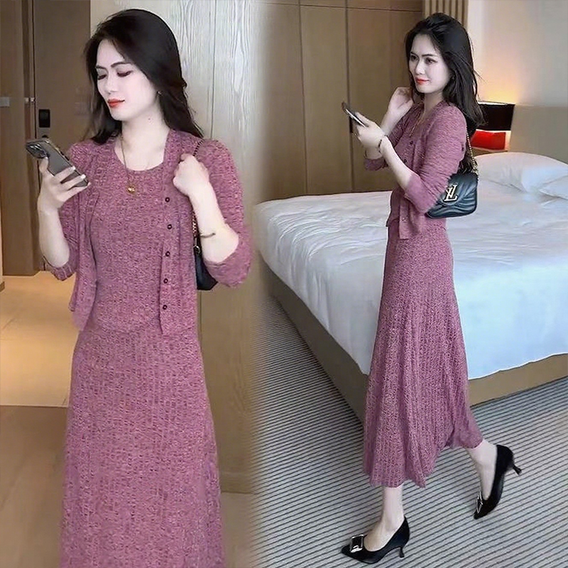 DE VERPAKKING BEVAT: 1 * Dames Gebreid Vest, Cardigan en Rok 3-Delige Set